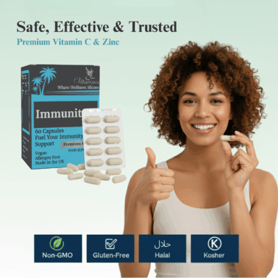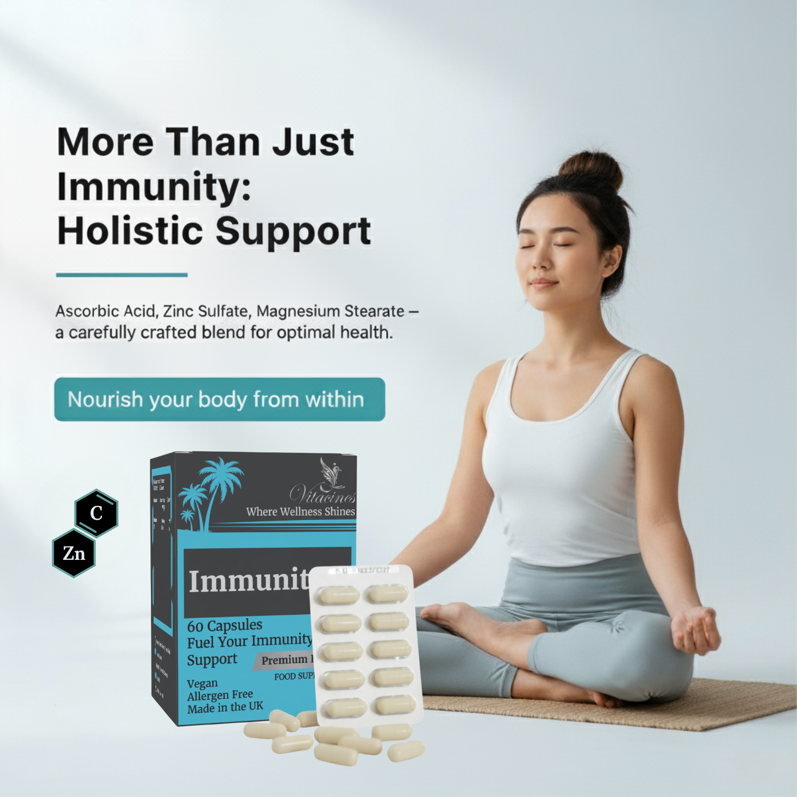 A vitamin C and zinc immunity support formula offers powerful protection to keep your immune system strong and responsive. Vitamin C is a potent antioxidant that helps defend the body against harmful free radicals, supports white blood cell function, and promotes faster healing and recovery from colds or infections. Zinc plays a crucial role in immune cell activity and helps the body fight off viruses and bacteria more effectively.